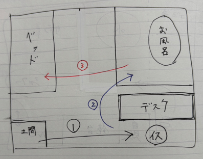部屋の中はこんな感じで、導線としては下記のような感じ(女の子によって違うかも)